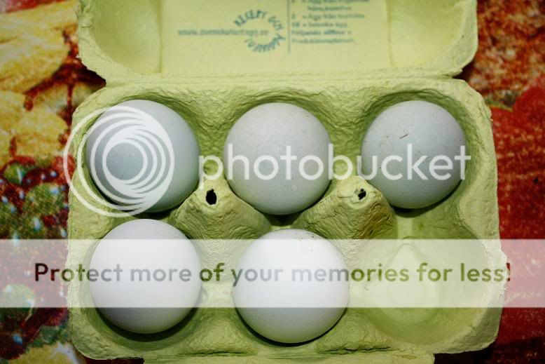 Äggen går i en fin blå ton till skillnad mot köpet jag gjorde innan dessa... Där var de riktigt gröna! D: INTE vad jag är ute efter inom araucana. De ska vara blåååååå!