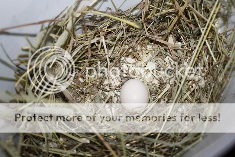 Hon började på att krafsa och ge ifrån sig en massa knorrandeoch jollrande ljud som sedan gick över till en högre ton och PLOPP sålåg där ett ägg - Detta på mindre än 5 min.