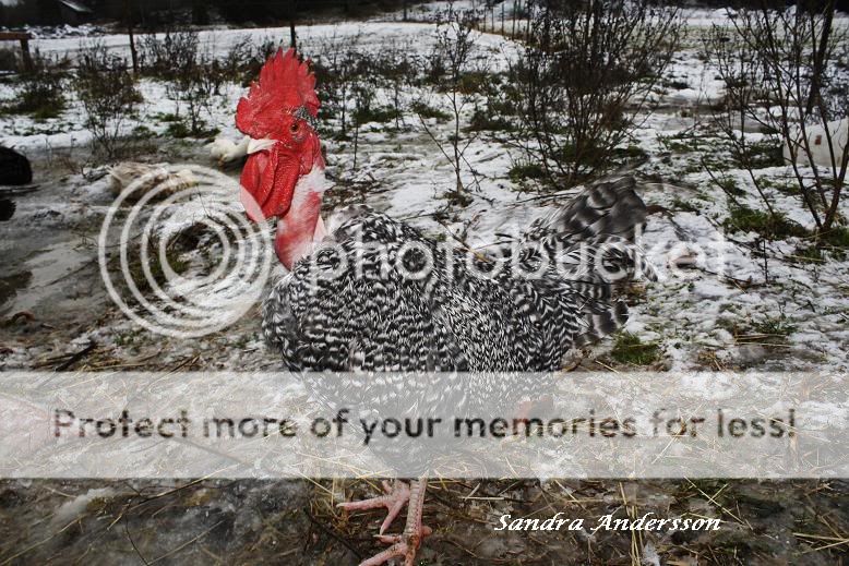 Till skillnad mot vad man kan tro så har nakenhalsar inga problem med snö. Väldigt härdiga, friska höns.